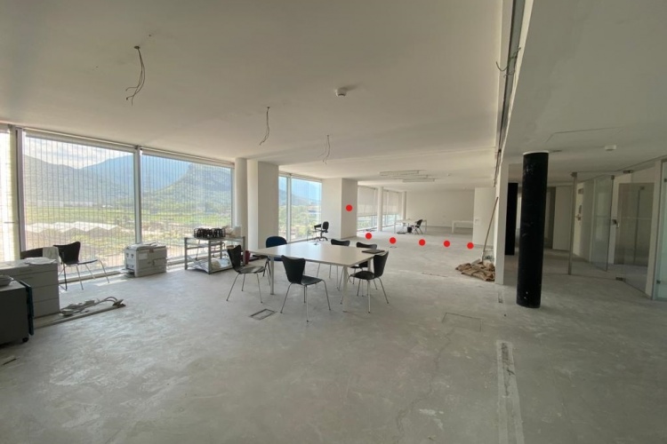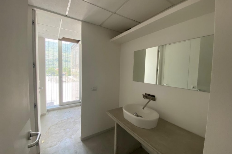 - l'interno del locale è suddiviso in due vani: un grande ufficio diviso da una parete in vetro e open space con possibilità di ulteriore suddivisione;